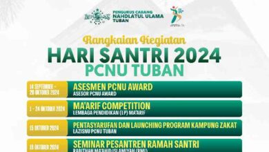 PCNU Tuban Siapkan Berbagai Kegiatan Peringatan Hari Santri 2024Tuban, PCNU Online Menyambut peringatan Hari Santri (HS) 2024, Pengurus Cabang Nahdlatul Ulama (PCNU) Tuban telah menyiapkan serangkaian kegiatan untuk… Baca Selengkapnya »
