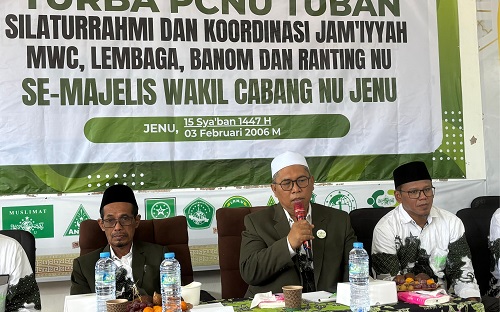 Turba perdana PCNU Tuban yang dilaksanakan di Majelis Wakil Cabang Nahdlatul Ulama (MWCNU) Kecamatan Jenu, Selasa (03/02/2026), menegaskan pentingnya silaturrahim dan konsolidasi organisasi sebagai modal utama dalam menjalankan roda organisasi.