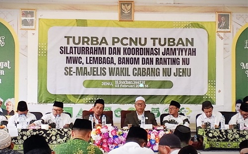 Pengurus Cabang Nahdlatul Ulama (PCNU) Tuban melaksanakan Turun Bawah (Turba) perdana dengan menyasar Majelis Wakil Cabang Nahdlatul Ulama (MWCNU) Jenu, Selasa (03/02/2026). Dalam kegiatan tersebut, Rais Syuriyah PCNU Tuban, KH Ahsan Ghozali, menegaskan pentingnya silaturrahim dan konsolidasi organisasi sebagai modal utama dalam menggerakkan roda organisasi.